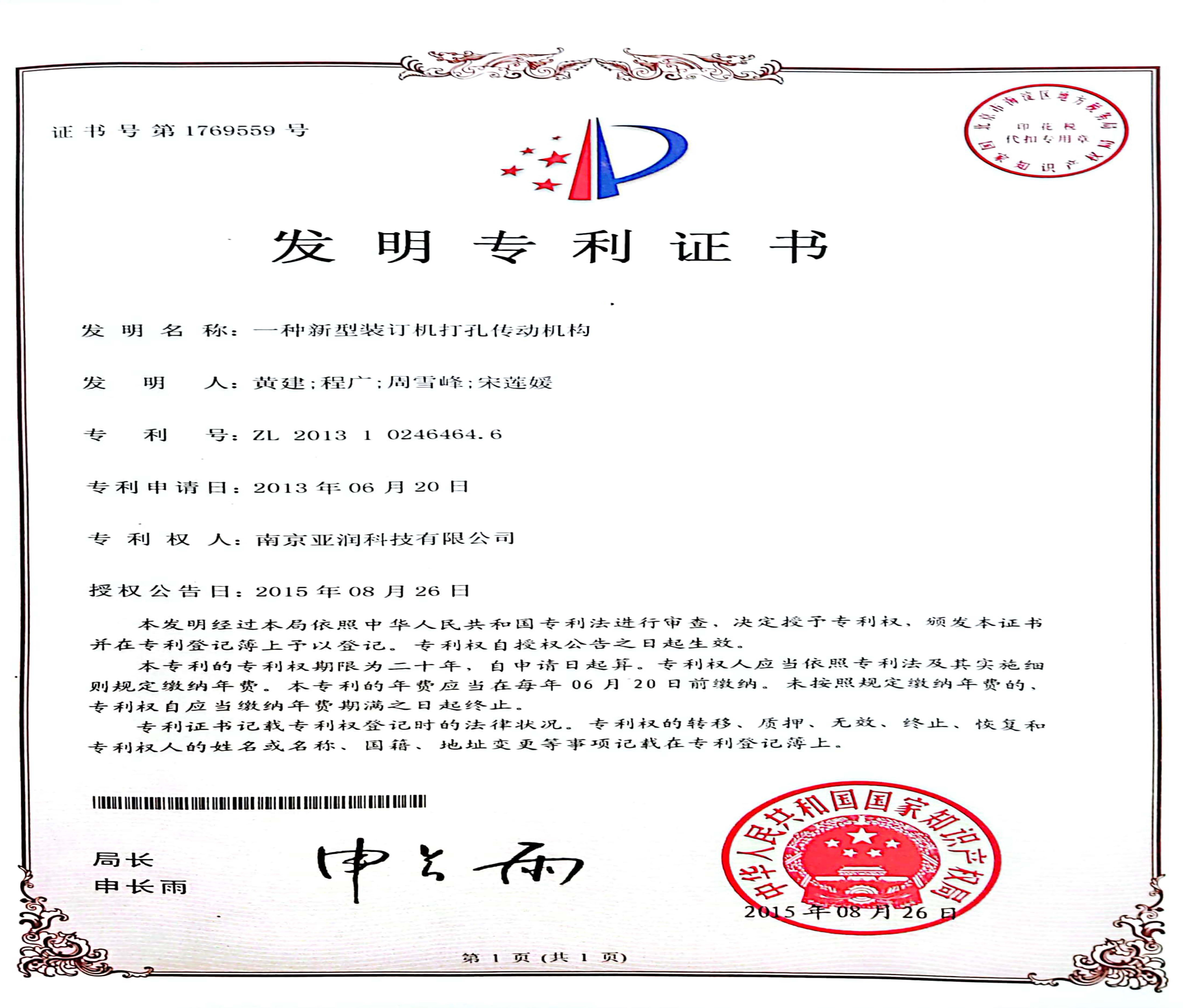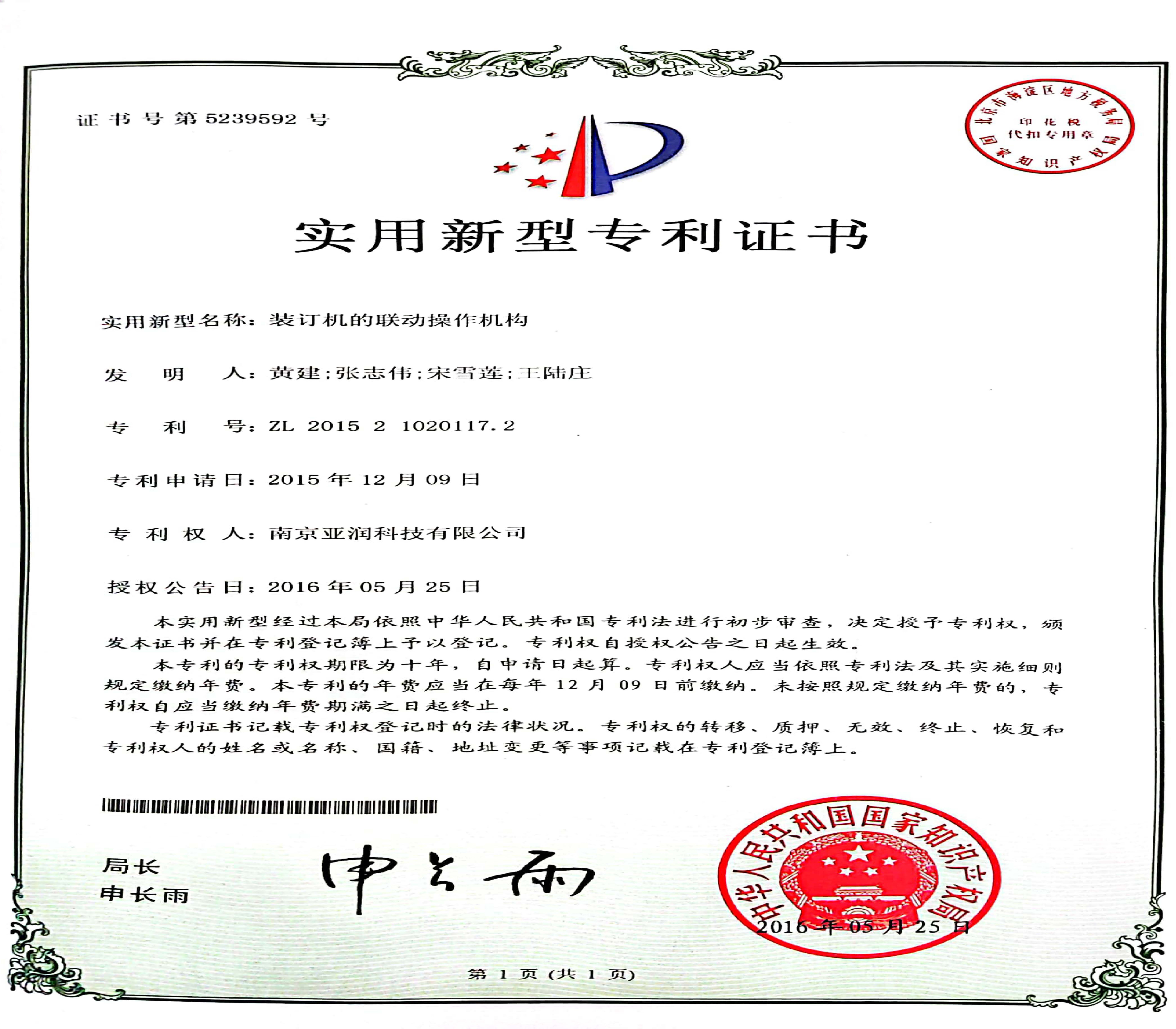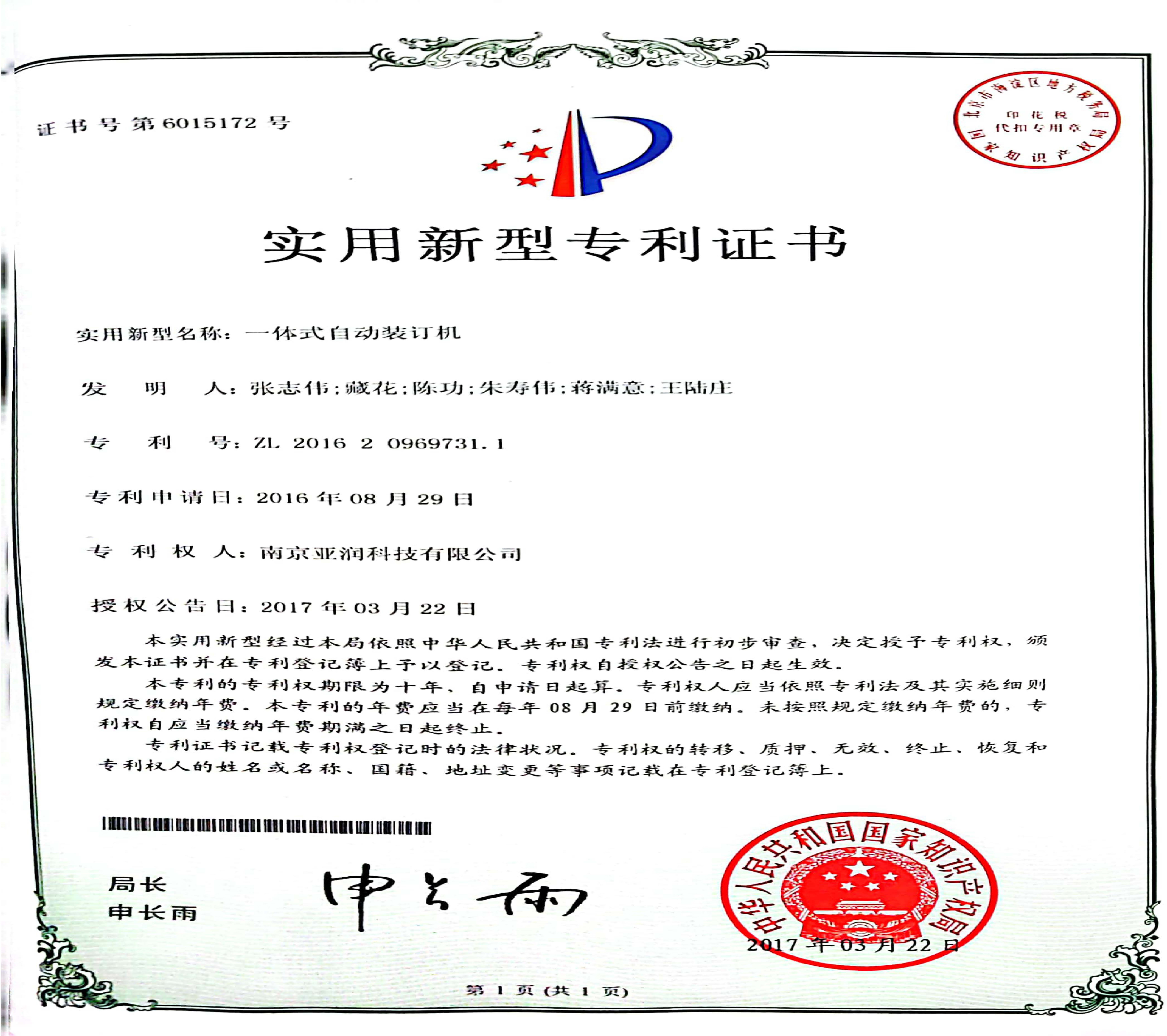 2001年7月23日,南京亚润公司成立,专业开发、生产、销售铆管装订机,为国内该领域早期生产厂家之一。